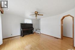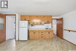 This 1 1/2 story home, situated on a 75x120ft lot, is ideally located near rink/ball diamonds and the downtown area. As you approach, the inviting front veranda sets the stage. Step into the cozy front porch and walk directly into the bright, open kitchen and dining area—an inviting space ideal for everyday living. Just off the kitchen/dining room is a convenient 4-piece bathroom. The main floor features a warm and welcoming layout complete with a comfortable living room highlighted by beautiful maple hardwood floors, as well as a main-level bedroom that offers flexible use as a guest room, office, or additional living space. Upstairs, you’ll find three additional bedrooms, providing plenty of room for a growing family, hobbies, or storage. The basement includes a storage area and additional laundry hookups, as well as housing the furnace and water heater. Outside, there is a massive 22'-0" by 44'-0" garage that would be perfect for your projects, toy storage or even a home business. This home combines classic charm with some modern updates, making it ideal for families or as an investment property. (id:27)