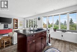 Charming year-round property at Parkview on Buffalo Pound Lake! This inviting 2-bedroom home offers comfort, functionality, and lake-life charm. As you approach, you’re welcomed by a spacious front deck with convenient storage underneath. Inside, the open-concept layout connects the kitchen and living room, highlighted by large windows that fill the space with natural light. The kitchen features updated cabinetry, a modern sink, a generous pantry, and a functional island that doubles as a prep area and eating space. The main level includes a well-sized bedroom and a spacious 4-piece bathroom, complete with laundry. At the back of the home, step out to a screened-in deck that overlooks a large yard—perfect for relaxing or entertaining. The lower level offers a small additional bedroom, mechanical room, and an extra toilet for convenience. Outdoors, the property includes an older garage, a fenced area with multiple raised garden beds, and a pathway leading to a private trail lined with apple trees and Saskatoon berry bushes. This is an ideal opportunity to own a cozy four-season retreat with both modern updates and natural beauty at your doorstep. (id:27)