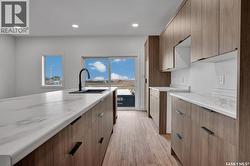 Welcome to 101 Emma Crescent—a beautifully planned bungalow set on a corner lot in Martensville’s Lake Vista community, just steps from schools, parks, and scenic walking paths. From the moment you pull up, the attention to detail is unmistakable. Thoughtfully placed windows, warm farmhouse accents, and inviting curb appeal make this home stand out from every angle. Step inside and the open concept instantly declares, “You’re hosting the next family gathering.” With a massive 12-foot island and generous living and dining areas, it’s the kind of space that makes entertaining feel effortless. The main floor features two comfortable bedrooms, two bathrooms, and the convenience of main floor laundry. Downstairs, the basement is wide open for your future plans—9’ ceilings, large windows, and an ideal layout to design anything from a cozy family room to a dream home gym or extra bedrooms. The 24’ x 26’ double attached garage is insulated, boarded, and truly oversized—built to fit both a full-size truck and an SUV with room to spare. New Home Warranty is included, and the kitchen appliances are already in place. Contact your favourite REALTOR® today to book a private tour. Some images have been virtually staged to help envision the space. (id:27)