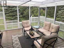 This gorgeous acreage is a must to see! Large walk-out bungalow is situated on 10 acres with a beautiful yard site and only 15 minutes west of Meadow Lake. You will certainly enjoy all the room this home has to offer. There are 3 main floor bedrooms, plus an office. The main living areas are very open and feature gorgeous windows and vaulted ceilings which give you a panoramic view of the country side. Dining room doors lead out to a 16ft x 20ft sunroom which is great for entertaining. The lower level of this home has a large family room, 4th bedroom, 2pc bathroom, laundry room, storage and mechanical area. All windows on the lower level are very large and provide great natural light. The house is heated with propane - forced air furnace, and there is also a propane fireplace in the living room. Lower level also has in-floor heat. Double attached garage measures 32ft x 24ft. Central A/C in 2017, shingles 2023, water heater March 2024, furnace is original, carpet & upstairs flooring approx. 2019, septic & well pumps replaced approx. 2019, washer & dryer 2020. Husqavarna (2014) riding lawn mower & TroyBilt garden tiller included, Starlink equipment for internet included, Projector/screen/surround sound speakers included & fridge in basement included. (id:27)