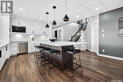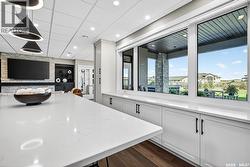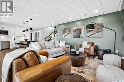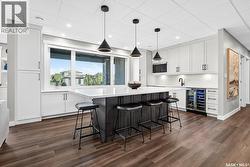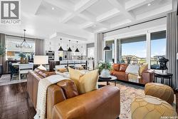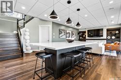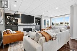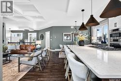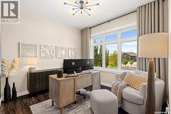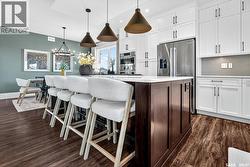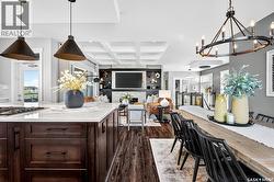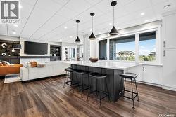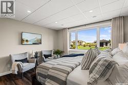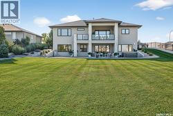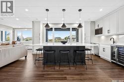 A truly exceptional residence nestled in the prestigious Estate of Iron Bridge on the edge of Moose Jaw’s city limits. This stunning home is a masterpiece of thoughtfully designed living space perfectly blending luxury & functionality throughout. The expansive yard includes UGS & drip lines to all plantings ensuring a vibrant, low maintenance outdoor space & serene ambiance with Gemstone lighting throughout the exterior creating a warm, inviting glow at night – no more hanging holiday lights! Stepping inside this meticulously crafted home through the exquisite foyer, the main level boasts over 1,800 sq ft of open concept living perfect for relaxing or entertaining guests. The Kitchen features sleek, sophisticated cabinetry with a high-end appliance package & oversize island – a true chef’s delight! With 2 laundry spaces (1 on each level!), ample storage & a mudroom with lockers, practicality meets comfort effortlessly. You will find 6 Bedrooms (currently 1 used for home gym & another for dedicated office) throughout the home (3 on each level) & 4 out of the 6 rooms have walk-in closets. The generous Primary Suite features a fireplace, walk-in closet & Ensuite - Imagine waking up every morning to THIS view! The Walk-Out Basement extends the living space dramatically with a large Family Room featuring a gas fireplace, wet bar with island for entertaining & additional storage all heated by in-floor systems for year round coziness (also in key areas such as Entryway, Bathrooms & Kitchen!). The triple car garage is equally impressive with built-in storage, in-floor heating, wiring for an electric vehicle & welder & a convenient sink for quick clean up after time in the yard. This spectacular property exemplifies luxury living with countless upgrades & attention to detail. A rare opportunity to own a truly special home in one of Moose Jaw's finest neighborhoods! Reach out today to schedule your private tour & experience all that this outstanding residence has to offer. (id:27)