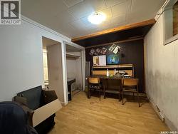 This charming home is ideal for first-time buyers or those looking to downsize, featuring recent updates like a custom espresso kitchen with glass cabinet inserts, marble tile countertops and backsplashes, upgraded fixtures, laminate flooring, and a vaulted ceiling in the kitchen and dining area. The primary bedroom includes a walk-through closet, and you'll love the added bonus of a sunroom, covered walkway, and front veranda. Key updates include shingles, windows, and a back door (all in 2009), plus a coverall garage for extra storage. Situated on a double lot with 100 feet of frontage, this property offers room to expand or build — a rare opportunity with endless potential. (id:27)