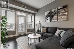 Welcome to unit 307 at 415 Maningas Bend in Saskatoon's Evergreen neighbourhood. The Brixton building is conveniently located near restaurants, green space, shops, gyms, and many other conveniences. This condo is positioned on the top floor and has everything you're looking for! Walking in you enter an open concept kitchen and living room. To your right is your own in-suite laundry with room for a storage and a closet for your coats and shoes. The kitchen has modern stainless steel appliances, granite countertops, and the hood vent is vented out to central exhaust, for when cooking goes sideways on you! The laminate floors are in excellent shape and run throughout the unit creating continuity that makes the space feel even larger than it is. The primary bedroom is spacious enough for a king sized bed and the large windows bring beautiful natural light into the room. Here you have your very own 3 piece bathroom with a shower and vanity topped with granite. There is a second bedroom as well as a 4 piece bathroom with a tub/shower combo and another granite topped vanity. Make sure you step out onto the south facing balcony as it's surprisingly big! Plenty of room for your table and chairs as well as a BBQ and plants - natural gas bbq hook up out here as well. To top it off this unit comes with 2 parking spaces and storage! One parking spot is in the heated underground parkade (#145), one that is an electrified surface stall (#32) and there is a locked storage unit in the parkade (#39). This building also has a guest suite, an amenities room and is pet friendly! Ask your Realtor® for details on what the policy, it's in the listing supplements. (id:27)