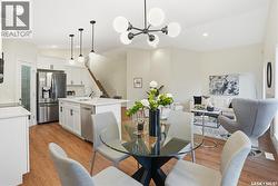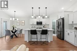 703 Beechdale Way – Briarwood Tucked away on a quiet street in desirable Briarwood, this updated modified bi-level offers over 1,700 sq ft of thoughtfully designed living space. With 5 bedrooms and 3 full bathrooms, the home blends comfort, style, and practicality. A bright great room with vaulted ceilings and a cozy gas fireplace creates an inviting first impression. The kitchen has been refreshed with maple cabinets, quartz countertops, and stainless steel appliances, complemented by updated flooring, lighting, baseboards, and paint throughout. A separate formal dining room provides a dedicated space for gatherings and family meals. Main-floor laundry adds everyday convenience. Upstairs, the private primary suite offers a peaceful retreat with a walk-in closet and a luxurious 5-piece ensuite. The fully developed basement expands the living space with a large family room and two generous bedrooms—ideal for guests, teens, or extended family. A heated double attached garage and well-manicured yard enhance the home’s appeal. With walking paths, shopping, and transit nearby, the location delivers both convenience and quality of life. A warm and inviting home in one of Saskatoon’s most sought-after neighbourhoods. (id:27)