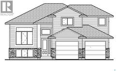 Brand New Luxury living in Warman! This brand new modified bi-level by Taj Homes is going to be a stunner. Ideally located in The Legends Neighbourhood of Warman, this location has it all - close to parks, amenities and quick access to saskatoon. The list of upgrades is long and include a spacious heated garage, oversized triple pane windows, LVP throughout the home and $1500 lighting credit so you can design your new home. Quartz countertops, 10ft ceilings throughout the main floor, ceiling height high gloss cabinetry, and included double car concrete driveway are just some of the notable items. The main floor features 2 bedrooms, a full 4 piece bathroom, a bright laundry room, and an open concept kitchen/dining/living space. Upstairs you'll be greeted by large double doors as you enter the master bedroom complete with walk-in closet, spacious ensuite bathroom and sunlight. You'll continue to be impressed by the large, bright basement family room which is open to development (contact for basement pricing). The direct access from the dining room takes you outside onto the included duradek clad deck complete with aluminum railing. Other featured items include - on-demand water heater, stainless steel appliances, and New Home Warranty. Contact your agent today to pick finishes and colours. Pictures are from previous home, final colours and finishes may vary. (id:27)