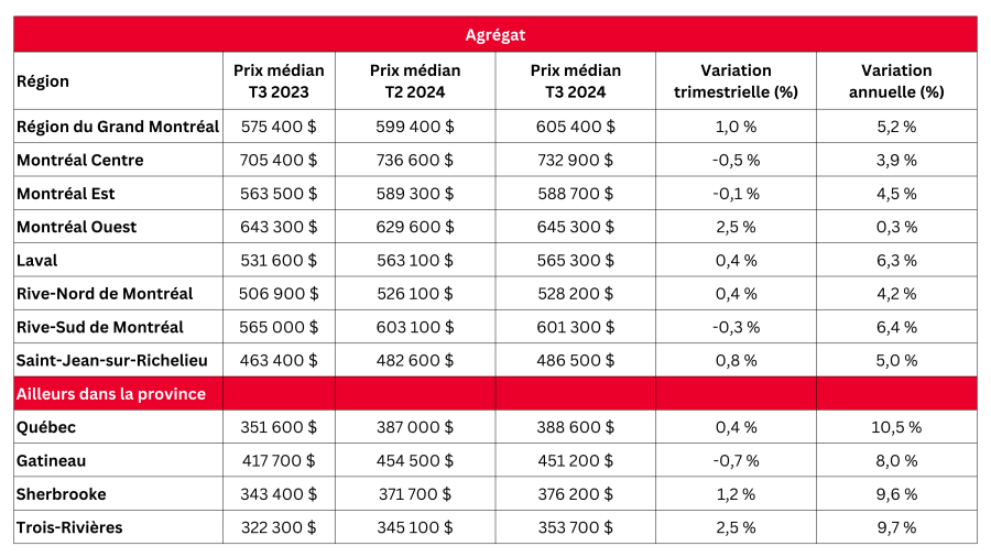 Tableau des prix – 3e trimestre 2024:rlp.ca/T3-2024-prix-des-maisons