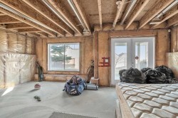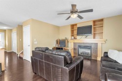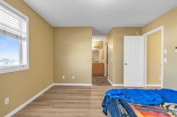 This remarkable former show home truly checks ALL the boxes — style, comfort, and value!As you arrive at this beautifully maintained complex, you’ll immediately notice the pride of ownership throughout. The property management team takes exceptional care of the community — from the well-kept roads and lush lawns to the mature trees and pristine building exteriors.Step inside and you’ll be welcomed by a bright, open-concept floor plan perfect for family living and entertaining. The dining area easily accommodates large gatherings, while the private balcony overlooking a peaceful greenbelt offers the ideal spot for morning coffee or evening relaxation. The living room provides a warm and inviting space for everyone to unwind.To your right upon entry, you’ll find a versatile office or den, perfect for working from home. A pristine half-bath nearby ensures guests feel right at home.Upstairs, the primary suite is a true retreat, featuring a walk-in closet and a brilliant ensuite bathroom. Two additional bedrooms and a 4-piece main bath complete the upper level. Enjoy brand-new laminate flooring upstairs, new carpet on the stairway, and all new appliances — refrigerator, stove, dishwasher, and washer/dryer — throughout the home!The walkout basement offers incredible flexibility, with its own entry leading to a lush green space. Bright and airy, this lower level can serve as a separate living area, rec room, or guest suite — the possibilities are endless. Step out to the third patio area and relax in your own sun-filled oasis.An attached garage with a new door opener provides secure parking and additional storage.Located in the highly sought-after Sagewood community of Airdrie, this home offers the perfect blend of tranquility and convenience. You’ll love the scenic pathways, reservoirs, creeks, and parks, all just steps away. Plus, enjoy easy access to shopping, schools, golf, and major routes:• 15 minutes to CrossIron Mills Mall• Less than 20 minutes to YYC Airport• 5 minutes to Woodside Golf Course• A short stroll to C.W. Perry SchoolDon’t miss your chance to own this stunning home — book your private showing today before it’s gone!