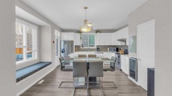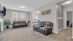 Discover incredible value with this beautifully updated Airdrie home, offering one of the lowest price-per-square-foot options in the area-without compromising on style. Enjoy new quartz countertops in the kitchen and bathrooms, stainless steel appliances, and updated flooring.The spacious, renovated kitchen with a charming window seat is perfect for entertaining, while the cozy living room fireplace invites you to relax and unwind. The main floor also features a generous office space and a convenient walk-in pantry.Upstairs, you'll find a serene primary suite complete with his-and-hers closets and a luxurious 5-piece ensuite with granite counters. This level also boasts an oversized family room with a vaulted ceiling and an abundance of south-facing windows for natural light. Two additional bedrooms, a full bathroom, and a large laundry room complete the upper floor.Situated on a quiet street just a few blocks from schools, parks, and transit, this home is a must-see. Book your showing today!