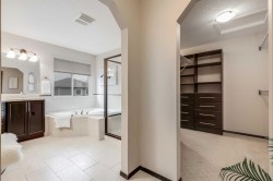 Location, location, location! This is one you don’t want to miss. With over 2,700 sq. ft. of beautifully designed living space, this home is perfect for a growing family or multi-generational living. Ideally situated within walking distance to schools, shopping, and with quick access to Highway 2, convenience is at your doorstep. Immaculate hardwood floors welcome you the moment you step inside. A formal living/dining room sits to the right of the central staircase—ideal for family gatherings or quiet evenings. The three sided fireplace creates a warm transition into the second living room, a cozy retreat for everyday relaxation. The chef’s kitchen is a showstopper: two tone cabinetry, granite countertops, built in wall oven and microwave, sleek cooktop, and a large island for effortless prep. An added bonus is the butler’s kitchen with gas range that offers extra cooking space—perfect for entertaining or meal prep. A charming breakfast nook opens to the backyard, where you’ll find a large deck with pergola, built in BBQ, and hot tub—your summer oasis! A spacious home office on the main floor, with French doors (desk included) makes working from home a breeze. The oversized, heated garage entrance features a walk in closet and separate laundry room for ultimate functionality. The upper level of this home is equally impressive. Including an expansive bonus room with space for large furniture, a media setup, or even a library/games area. The luxurious primary suite has an impressive L shaped walk in closet (with built ins) and a spa inspired 5 piece ensuite. Two additional oversized bedrooms, each with walk in closets, easily accommodating king beds or multiple beds and a main four piece bath complete this level. Some Extra Features of this property include: vinyl fencing on both sides of the property, Central vacuum system, reverse osmosis, and water softener, 9 ft basement ceilings (ready for future development), Alarm system (contract with Airdrie Alarm), BRAND NEW ROOF AND SIDING ON SOUTH EXPOSURE (Nov 2025) and all carpets professionally cleaned and sanitized!!This home truly has it all—space, style, and upgrades galore. Priced to sell and ready for its next family. Don’t wait—book your showing today!