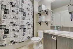 WOW! FULLY DEVELOPED BASMENT AND LOW condo fees! Welcome to this charming and well-kept townhome in the heart of Williamstown—a peaceful, family-friendly community surrounded by parks, schools, and pathways. This two-story home features three bedrooms and 1.5 bathrooms, offering the perfect balance of comfort and functionality. The main floor greets you with a bright and spacious living area, accented by large windows and durable laminate flooring. The kitchen is thoughtfully designed with dark cabinetry, a corner pantry, and an eat-up peninsula, seamlessly connecting to the dining room and 2-piece powder room. Upstairs, you’ll find three generous bedrooms and a full bathroom with convenient cheater access from the primary suite, which also includes a walk-in closet. The fully developed basement adds even more living space, complete with a large recreation room, plenty of storage, a laundry area, and rough-in plumbing for a future bathroom. Step outside to enjoy your private back deck and common yard space—perfect for relaxing or entertaining. This pet-friendly complex (with board approval for 2 pets) is ideal for first-time buyers, downsizers, or investors alike. You also have 2 parking stalls, one assigned and one common. Don’t miss this opportunity to own a lovely home in one of Airdrie’s most desirable neighborhoods.