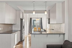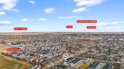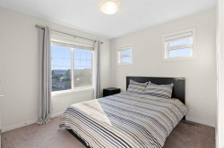 Welcome to this beautifully kept corner-unit townhouse in the established community of Sagewood, offering peaceful living while staying close to all amenities. This bright and functional home features 3 bedrooms, 2.5 bathrooms, and a double attached tandem garage, ideal for families, first-time buyers, or anyone seeking convenience plus peace.As you walk up to the main level, you are greeted by a sun-filled dining area with a south-facing patio door that opens onto a private balcony equipped with a BBQ gas line. The open-concept kitchen includes stainless steel appliances, granite counters, ample cabinetry, and a convenient pantry. Adjacent to the kitchen is a spacious living room with a large window overlooking the quiet street. A well-placed 2-piece bathroom completes the main floor.The upper level is bright and thoughtfully designed. It features a generous primary bedroom with a 3-piece ensuite and walk-in closet, a second bedroom with its own walk-in closet, a third bedroom with ample storage, a 4-piece common bathroom, and upper-floor laundry for added convenience.This well-maintained home is ideally positioned in a convenient and family-friendly location. You are within walking distance of Our Lady Queen of Peace Elementary School, C. W. Perry Middle School, ponds, playgrounds, walking paths, and Woodside Golf Course. Everyday amenities including Sobeys, restaurants, gas station, and local shops are only minutes away. Commuting is smooth with quick access to 8 Street, Veterans Boulevard, and easy connectivity to Deerfoot Trail. You are also a short drive from Airdrie Main Street, Genesis Place Recreation Centre, and the new Airdrie Public Library, making this property a perfect blend of comfort, accessibility, and lifestyle.This home has everything you need and more. Book your private showing today and experience the value for yourself.