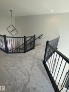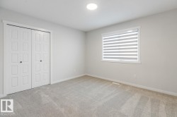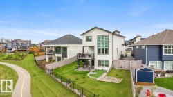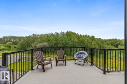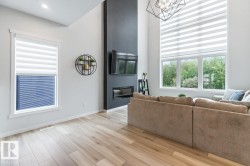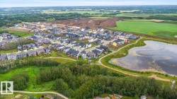 This stunning WALKOUT 2 Storey is sure to impress, sitting on a large pie lot backing walking trail & trees & loaded with upgrades including A/C, 4 bedrooms, 3.5 baths & a 30x34' heated triple garage, 240V power & a 10’ RV bay door w drive-thru door at back. A grand entrance welcomes you into the open-concept main floor with soaring ceilings. Chef’s kitchen boasts modern cabinetry, massive pantry, gas stove with pot filler, & a quartz island overlooking the dining area. The living room features open to above ceilings & a sleek electric fireplace + spacious 2pc guest bath. Upstairs, retreat to the king-sized primary suite with a California walk-in closet & spa-like ensuite with a huge walk-in shower. Two more spacious bedrooms, a 4pc bath, & upper laundry complete the level. The fully finished walkout basement offers 9’ ceilings, a large rec room, 4th bedroom, & another full bath. Enjoy the fenced & landscaped SW yard with a putting green, epoxy patio, & maintenance-free deck! This home is better than new!
