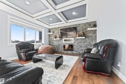 Discover this beautiful north facing, 2-storey in Forest Heights, Beaumont with a fully finished WALK-OUT basement! Step inside to a soaring open-to-above living room, formal dining, family room and a bright open kitchen with walk-thru pantry (roughed-in for a spice kitchen). Enjoy views of the walking trail and beautiful pond from two large balconies on the back of the home! The main floor offers a versatile den/bedroom with full bath. Upstairs features 4 bedrooms, 3 full baths, and a large bonus room. The walk-out basement offers an in-law suite with 2 bedrooms, full bath, 2nd kitchen, plus an additional owner’s suite with half bath. Designed for comfort with 2 furnaces & Central AC! Backing onto a walking trail and just steps from a serene pond, this home combines spacious living with natural beauty—perfect for large families or multi-generational living. (Offers over 4,200 sq.ft of total living space!)