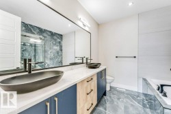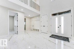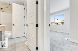 **MAIN FLOOR BEDROOM AND BATH, SPICE KITCHEN** Welcome to this exceptional two-story home in Beaumont's sought-after Triomphe neighbourhood, offering 2,170 sq ft of modern and efficient living space. The main floor impresses with an open-concept design, featuring a spacious great room with a cozy electric fireplace, a formal dining area, and a well-appointed spice kitchen with quartz countertops and a coppered ceiling detail for a touch of elegance. Upstairs, the luxurious master suite provides a peaceful retreat with a walk-in closet and an ensuite, complemented by additional bedrooms and a versatile bonus room. Built with superior standards, this home includes high-efficiency windows, enhanced R-22 insulation, and a roughed-in radon mitigation system for a healthy living environment. The finished, insulated garage adds valuable convenience.**Photos are representative**
