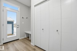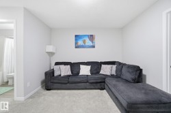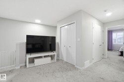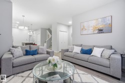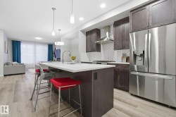 Welcome to this stunning 2025 built home in the desirable Elan community of Beaumont! This open-concept home is loaded with upgrades, including luxury vinyl plank flooring and stylish designer finishes throughout. The main floor offers a rare full bedroom and full bathroom, perfect for guests or multi-generational living. The modern kitchen features stainless steel appliances, quartz countertops, and a refrigerator with an ice maker, flowing seamlessly into the bright great room with a cozy electric fireplace ideal for winter evenings. Upstairs, you’ll find a separate bonus room, convenient LAUNDRY ROOM WITH A SINK, and three spacious bedrooms. The primary suite boasts a walk-in closet and a beautiful ensuite with quartz countertops. Outside, enjoy a large front veranda, side entrance and a double detached garage. The unfinished basement provides a blank canvas for future development, enhanced by the bonus of a water softener already installed. Don’t miss this incredible opportunity!