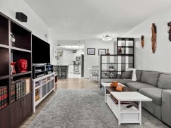 This spacious Newbury floorplan features an open-concept kitchen with granite counters, stainless steel appliances, white shaker cabinets, pantry, and peninsula seating. The bright great room offers a dining area, cozy gas fireplace, and direct access to an incredible west facing, oversized dog friendly patio; a true outdoor oasis perfect for entertaining, relaxing, or letting your pup enjoy the sunshine.The oversized primary suite impresses with patio access, a walk-in closet with custom organizers, and a granite-topped ensuite with soaking tub. A generous second bedroom, full bath with walk-in shower, in-suite laundry, updated flooring, and titled underground parking complete this urban retreat.Quiet, concrete construction — just steps from Mount Royal Village, transit, dining, and entertainment. Your Beltline lifestyle starts here!