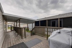 This #106 99 Arbour Lake Road in the Watergate of Arbour Lake. This is just an incredible manufactured home community that is clean, vibrant, and just idyllic. The park is extremely well run and includes a ton of amenities. The outdoor pool, dry sauna, and indoor hot tub are highlights of the clubhouse that also includes a banquet hall, library, exercise room equipped with weights and cardio equipment, a TV room, a Lending Library with a varied selection of paperback novels, DVD’s and puzzles, a games room with billiards tables, shuffle board tables and dart boards; a laundry room with coin operated machines. #106 is in the perfect spot. First, it’s on a south backing space, so it backs onto the path system that leads directly to the clubhouse. Next, the interior renovations are a pleasant surprise. An updated kitchen with hard surface flooring that stretches through out the open living and dining area are fantastic. The secondary bedrooms are at the front of the home, while the primary is at the back overlooking the yard and green space. Not only is there great separation from the other bedrooms, but there is also a full ensuite which is rare for a mobile home. In unit laundry, a covered carport, and an included garden shed all add to the package. Numerous mechanical upgrades have been completed over the past few years as well, which you can see in the extra links below. Also included in those links are our floor plans, full measurements, details on the community and clubhouse, as well as our 360 tour.