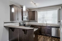 ***MOVE IN READY! IMMEDIATE POSSESSION! LOW CONDO FEES! SINGLE GARAGE W/DRIVEWAY!*** This stunning 3-storey townhome perfectly blends style, comfort, and convenience in one of Calgary’s most vibrant northeast communities. Offering 2 spacious bedrooms, 2.5 bathrooms, and a versatile main-floor den-ideal as a home office, study, or fitness space-this thoughtfully designed home is tailored for today’s modern lifestyle. The attached single-car garage includes extra storage, plus there’s an additional parking pad and easy street parking nearby. Inside, you’ll find newer laminate flooring, fresh paint, and a bright open-concept layout. The chef-inspired kitchen is equipped with stainless steel appliances, ample cabinetry, and a breakfast bar, flowing seamlessly into the dining area and cozy living room. Step out to your sunny west-facing balcony, the perfect spot for morning coffee, barbecues, or evening relaxation with mountain views. Upstairs, the vaulted primary retreat features dual closets and a private 3-piece ensuite, while a second generous bedroom, full bathroom, and convenient upper laundry complete the level. The well-managed complex offers peace of mind, with low condo fees adding extra value. Ideally located steps from Redstone View Lake, scenic walking paths, parks, and playgrounds, this home is just minutes to schools, shopping, restaurants, the airport, and major routes including Stoney Trail and Deerfoot. Whether you’re a first-time buyer, investor, or professional, this move-in-ready Redstone gem is the perfect place to call home. Don’t miss your opportunity-book your private showing today!