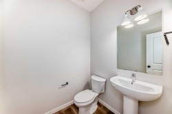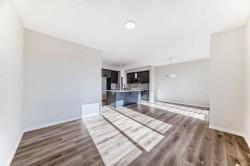 Welcome to the Kalara—where modern design, flexible living, and everyday functionality come together in one beautifully planned home. A bright, open-concept main floor connects the kitchen, dining, and lifestyle areas, all oriented to a desirable south-facing backyard that fills the space with natural light. The kitchen is a true standout with modern grey cabinetry carried to the bulkhead, black hardware, white quartz counters, a stacked subway tile backsplash, and stainless steel appliances. Thoughtful touches—like pot lighting and clever added storage under the island’s bar seating—make this space as practical as it is stylish. A versatile main-floor flex room adapts easily to a home office, study, or playroom, while upstairs a central loft offers an ideal media zone or reading nook. The upper floor is headlined by a smartly designed laundry room that connects directly to the primary ensuite—streamlining daily routines—alongside a serene primary retreat and two additional bedrooms for family or guests. Designed with tomorrow in mind, the home features a 9' foundation and a secondary side entrance, creating excellent potential for future basement development—think guest or in-law space, or a suite configuration (subject to city/municipality approval and permitting). With its balanced layout, quality finishes, and room to grow, the Kalara nails comfort, function, and value. Set in Mahogany—one of Calgary’s most sought-after lake communities—you’ll enjoy a 63-acre freshwater lake, two private beaches, and an extensive network of parks, pathways, and wetlands. Everyday essentials are close at hand with plentiful nearby shops and services, plus quick access to schools and the South Health Campus. It’s an active, four-season lifestyle wrapped in a vibrant community—an easy place to love calling home.