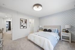 Welcome to this immaculate showhome in the highly desirable Wolf Willow community! This pristine 3-bedroom, 2.5-bathroom home has never been lived in and comes fully furnished with designer show home furniture, curated art pieces, and elegant window coverings all included. Boasting over $45,000 in builder upgrades with tasteful, high-end finishes throughout, this home features air conditioning for year-round comfort, professionally landscaped yard with mature plantings, and a beautiful deck perfect for entertaining. Every room showcases thoughtfully designed accent walls adding character and style, while a convenient office desk nook on the second-floor hallway maximizes every inch of space. Ideally situated steps away from the dog park, this home is perfect for pet owners and families alike. Wolf Willow has long been cherished for its natural beauty, diverse fish and wildlife, and abundant recreational opportunities. With its contemporary design, numerous amenities, and strong connection to the river, Wolf Willow brings the lifestyle and beauty of the Bow River Valley right to your doorstep. This is a rare opportunity to own a designer showhome with everything included - simply move in and start living the Wolf Willow lifestyle!