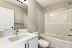 Move into your BRAND NEW home for Christmas! This gorgeous half duplex—the LOTUS by Excel Homes—is ready for quick possession and perfectly situated in SETON RIDGE, Calgary’s newest urban hub directly south of Seton with sweeping views of the Bow River Valley. Here, you’ll enjoy the natural beauty of vast prairie landscapes balanced by a vibrant modern setting just minutes from the bustling Seton Urban District with its restaurants, theatres, shopping, and essential services. Residents will love access to the SHOA Club, a 14,000 sq. ft. recreation facility featuring a splash park, skating rinks, tennis, basketball, and pickleball courts along with year-round activities. The community also offers parks, trails, and an environmental reserve designed for active living. The Lotus offers an open, functional layout designed for connection and comfort. At the front of the home is a versatile flex room that can be used as a home office or playroom. Toward the rear, the upgraded Level 2 kitchen boasts a corner pantry and flows seamlessly into the bright dining nook and great room, where a full-height electric fireplace creates a warm, inviting focal point. Upstairs, an elegant black metal spindle railing leads to a central bonus room with a vaulted ceiling, along with a convenient laundry area and a full secondary bathroom. The primary suite features a walk-in closet and an ensuite with dual sinks, generous storage, and a calming retreat for unwinding after a long day. Two additional bedrooms complete the upper floor. This Lotus also includes a fully LEGAL TWO BEDROOM LEGAL BASEMENT SUITE, offering the potential for valuable rental income. This home comes with a 20 x 20 gravel parking pad, gravel to side yard & sod to front yard. There is also a gas line to the bbq at the rear. With over 35 years of experience, more than 15,000 homes built, and 75 awards for design and industry excellence, Excel Homes continues to deliver quality, innovation, and peace of mind—making the LOTUS a truly smart choice for your next move.