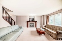 Tucked away on a quiet, family-friendly street, this beautifully maintained two-storey home offers exceptional comfort, thoughtful upgrades, and an ideal layout for growing families or first-time buyers alike. With 3 spacious bedrooms, 2.5 bath with over 1,400 square feet of well-designed living space, this home delivers both functionality and charm in one inviting package.Step into the welcoming living room, where large windows flood the space with natural light and a cozy fireplace—framed by a rich cherry maple mantle and convenient TV niche—sets the perfect ambiance for relaxing evenings. At the heart of the home, a centrally located maple staircase creates a stylish transition into the kitchen and dining area.The kitchen is a chef’s delight, featuring sleek black appliances, ample cherry maple cabinetry, a contemporary tile backsplash, and a functional center island ideal for meal prep and casual dining. Whether you're hosting guests or enjoying everyday meals, this space is designed for connection and convenience.Upstairs, the bright and spacious primary bedroom features extra windows, a large walk-in closet, and a private 3-piece ensuite—offering the perfect retreat after a long day. Two additional well-sized bedrooms and a full 4-piece bathroom complete the upper level.Located near schools, parks, shopping, and major commuter routes, this home offers easy access to everything your family needs. With great curb appeal and a welcoming interior, 135 Copperstone Grove SE is a home you’ll be proud to call your own.