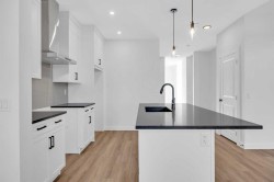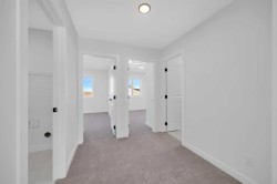 Welcome to the Concord II by Broadview Homes, a brand new home with a detached garage, Hardie exterior siding, and a rare park-facing lot in Vermilion Hill, one of Southwest Calgary’s most nature-focused new communities. Offering 3 bedrooms, 2.5 bathrooms, a main floor flex room, and future basement suite rough-ins, this home delivers modern style with long-term flexibility. The main level features a versatile front flex space ideal for a home office or guest area, along with an open-concept layout designed for everyday living. The kitchen includes quartz countertops, a large 7’6” island, and cabinetry to the ceiling for a clean, elevated finish. The dining and great room flow seamlessly together, highlighted by an electric fireplace with stunning floor-to-ceiling tile detail. Upstairs, the primary suite offers a walk-in closet and a beautifully finished ensuite with dual vanities, a fully tiled shower, and a soaker tub. Two additional bedrooms, a full bathroom, and upper-level laundry complete the upper floor.Outside, enjoy a completed deck, detached garage, and the unique lifestyle benefit of fronting directly onto park space. Vermilion Hill is surrounded by exceptional outdoor amenities, just steps from Fish Creek Park with quick access to Weaselhead Flats, Glenmore Reservoir, and the Tsuut’ina Trail. With mountain views, planned greenways, future parks, and Dark Sky community designation, this is a rare opportunity to own a new home in one of Calgary’s most scenic southwest locations.