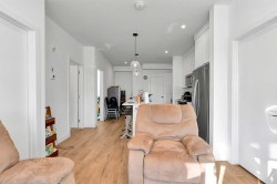 Bright and modern 3-bedroom, 2-bath corner condo in Wolf Willow. This open layout features 842 sq ft with oversized windows, luxury vinyl plank floors, and 9-ft ceilings. The kitchen offers quartz counters, stainless steel appliances, full-height cabinetry, and a large eat-up island. The primary suite includes a walk-through closet and private ensuite, with two additional bedrooms and a 4-piece bath. Enjoy a spacious balcony, in-suite laundry, and titled underground parking. Building amenities include a pet spa, gym, and bike storage. Steps to the Bow River, Blue Devil Golf Club, and new Wolf Willow Crossing shops. Easy access to Stoney and Macleod Trail.
