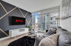 This stylish 1-bedroom, 1-bathroom residence sits high on the 17th floor, showcasing sweeping west-facing views of Calgary’s skyline.Inside, you’ll find a sleek open-concept design with bright finishes, quartz countertops, and custom cabinetry paired with light-toned vinyl plank flooring. The kitchen, equipped with premium Blomberg and AEG appliances. The living area is bathed in natural light and extends effortlessly to a spacious balcony, the perfect spot to unwind and take in the city lights.The bathroom combines function and relaxation with a deep soaker tub and clean quartz detailing. Residents of The Guardian enjoy access to a state-of-the-art fitness facility, stylish social lounge, workshop, bike storage, concierge, and 24-hour security. Positioned at the gateway to Calgary’s Culture + Entertainment District, this location is second to none. You’ll be steps from Stampede Park, the soon-to-be new arena, and the upcoming Green Line LRT. With all furniture negotiable, this home can be move-in ready from day one.