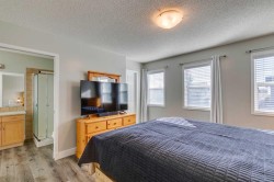 For buyers seeking something truly special, this property delivers on every front. The showpiece is an exceptional 28’' x 30' heated, over-height garage/workshop; a rare find for anyone needing space for vehicles, trades, or creative pursuits. Outfitted with a 20' x 9' security roll-top door, overhead gas heat, and a vented wood stove (with dedicated outdoor wood storage space), it’s the perfect all-season workspace. A workbench with cabinetry and smart layout make it a dream setup for hobbyists, small business owners, or collectors.Adding to its appeal, 25 solar panels (installed 2022) power the property to operate near net-zero electricity year-round, keeping utility costs impressively low.Inside, the main residence has been lovingly maintained and updated by it’s original owner. Recent renovations expanded the kitchen island with custom cabinetry, quartz counters, updated appliances, and luxury vinyl plank flooring carried throughout the main and second floor. Upstairs, the primary bedroom features a walk-in closet and ensuite, while two additional bedrooms share a full bath + convenient upper laundry with new washer/dryer (2024).Outdoor living is equally inviting with an exceptional two-tiered rear deck with privacy walls and a clear-cover roof provides tons of space to grill and lounge in a comfortable, sheltered entertaining space through all seasons. For those with an eye for investment or multi-generational flexibility, an (illegal) separate-entry basement suite provides independent living with a full kitchen, bedroom/living area (with egress window), laundry, and a full bath. Combined with the workshop’s potential for business use or additional rental income, savvy investors will recognize the multiple income opportunities between the home, suite, and garage. This home provides a variety of options for family living and investing.Additional Highlights: Excellent proximity to transit, shopping, and amenities + only 2 km from Fish Creek Park and quick access to Stoney Trail & 22X.