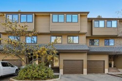 Welcome to Lakeview Green Phase II, the epitome of desirable living in Calgary’s sought-after Lakeview community. This fully renovated townhome is beautiful, modern, and move-in ready.Step inside to discover sunlight streaming through the south-facing living room, with flat ceilings, recessed pot lighting, anchored by a sleek gas fireplace, and custom built-ins, perfect for relaxing evenings or hosting guests in style.The designer kitchen is a true showpiece. From the quartz countertops to the ceiling-height cabinetry and full counter-depth fridge/freezer wall, every detail has been thoughtfully designed. The center island offers additional prep and an abundance of drawers and storage space, while the banquette dining nook provides a cozy spot for morning coffee and family dinners with treetop views.Upstairs, the primary suite is a serene retreat featuring hardwood flooring, double mirrored closets, and a spa-inspired ensuite complete with a double vanity and designer fixtures. Two additional bedrooms and a renovated full bathroom with dual sinks complete the upper level, ideal for family, guests, or a dedicated home office.Enjoy the south-facing deck overlooking the mature park-like green space — a private, quiet setting that feels miles from the city, yet just minutes from downtown. The attached under-unit double tandem garage with mezzanine storage area for all your storage needs. The back-of-garage renovated office/craft room offers even more living space options.Located steps from Jennie Elliott Elementary, Bishop Pinkham Jr. High, Connect Charter School, and the natural beauty of North Glenmore Park and Weaselhead Flats, this property blends modern luxury with one of Calgary’s most sought-after community lifestyles.This move-in ready home is Lakeview living at its finest.