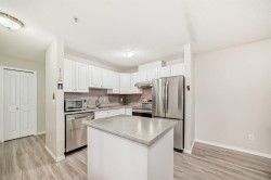 Welcome to the sought-after Malibu floor plan, the largest two-bedroom, two-bathroom condo in the building — freshly painted in warm, neutral tones and move-in ready!Step inside to an expansive living room with a cozy corner fireplace and built-in surround sound wiring, opening onto a large private deck overlooking the tranquil fountain and courtyard. The bright, open kitchen flows seamlessly into a generous dining area that easily seats 6–8 people, perfect for entertaining.The primary suite offers a spacious bedroom, walk-through closet, and private 4-piece ensuite. A second oversized bedroom sits next to another full bathroom — ideal for family, guests, or a home office.You’ll love the in-unit storage and laundry room with washer & dryer included. Condo fees conveniently cover heat and electricity, adding value and peace of mind.Parking is easy with an assigned stall plus an additional pass for street parking.Unbeatable location — just steps to the C-Train, YMCA, library, shopping, restaurants, and movie theatre.