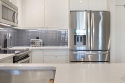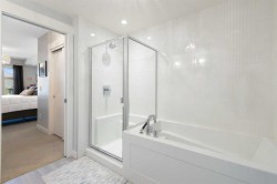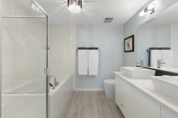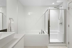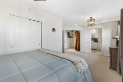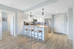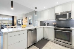 OH Sat 11-1. Sophisticated design and a phenomenal location come together in this 1430 sq ft multi-level top floor condo in Valmont at Aspen Stone. A convenient dual primary bedroom layout offers incredible flexibility for families, downsizers or investors with each suite thoughtfully separated for ultimate privacy. The main floor is incredibly welcoming with a grand open plan with high-end upgrades and finishes. The sleek kitchen inspires culinary creativity featuring full height cabinets, stainless steel appliances, quartz countertops and a waterfall edge peninsula island with casual seating. A spacious dining area accommodates entertaining with ease while also functioning as a flexible work-from-home zone. Adjacently, the inviting living room is enhanced by a custom built-in media centre and oversized windows that fill the space with natural light, opening onto a glass railed balcony that makes barbequing and outdoor relaxation effortless. A generously sized primary bedroom on this level is styled with elegant lighting and dual walk-through closets that connect to a luxurious 5 pc ensuite boasting dual sinks, a soaker tub and a glass shower. Completing this floor are in-suite laundry with ample storage and a convenient powder room. Upstairs, a second private primary suite mirrors the sense of comfort with its own 4 pc ensuite and a custom walk-in closet, making it ideal for children, extended family, guests or even a flexible office space. 2 titled side-by-side parking stalls in the heated underground parkade plus a storage locker provide practical convenience. Residents enjoy access to on-site fitness facilities, guest suites, bike storage and abundant visitor parking. The location is exceptional with Webber Academy, Rundle College and other top schools nearby and a short walk connects you to the upscale shops and eateries of Aspen Landing including Ladybug Café and Blush Lane. Westside Recreation Centre and the 69 Street LRT station are minutes away, offering quick access downtown. Scenic walking paths around the community wetland pond add a touch of nature to the everyday. This refined condo blends modern upgrades, thoughtful function and a lifestyle defined by both luxury and convenience! Open House Sat/Sun 12-2.