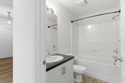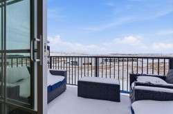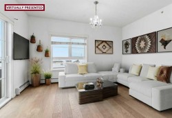 One of a kind location and unique TOP FLOOR CORNER UNIT: Gorgeous layout with East AND North corner windows + patio doors, a fully open balcony with sunsets and Mountain views Westward, as well as sunrises to the East. Welcoming interior offers enough comfortable area by the entry for a complete home office, study or library/sitting area, in addition to an oversized foyer and laundry combined. The open plan moves into a big central dining room, the beautiful wrapped kitchen with chopping-and-seating island and finally the spacious corner living room. For privacy, 2 great bedrooms are located on opposite sides of the lifestyle use rooms, and each has one of 2 full bathrooms - the primary even has a full walk-through dressing room closet. See iGuide 3D link and Detailed Plans for all the superbly balanced information - some photos include Virtual Furniture, appropriately fit for enhancing all the room spaces. Copperfield Park is a 2012 complex with only 5 low rise buildings and 14 townhomes, attractively landscaped outdoor spaces, closest to to South Pointe Shopping Plaza, Deerfoot Trail, plus, getting onto Stoney/201 East/South at 114th Avenue SE. Enjoy Titled underground Parking, large Storage and secured mail/package delivery.