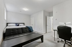 Welcome to 2419 22 Street NW—an exceptional opportunity to own a beautifully appointed home in the heart of Banff Trail at an outstanding price point. This 4-bedroom, 3.5-bathroom semi-attached property offers a thoughtful blend of style, comfort, and functionality—perfect for a young couple, growing family, or professionals seeking walkability and convenience.Ideally located within walking distance to all levels of schooling from Kindergarten to the University of Calgary, as well as Foothills and Children’s Hospital, this home allows you to spend less time commuting and more time enjoying life’s quiet moments.Step inside to a bright and airy open-concept layout highlighted by soaring 10’ ceilings. The inviting living room flows seamlessly into the dreamy chef-inspired kitchen, complete with a large pantry, 5-burner gas cooktop, built-in ovens, and an expansive waterfall island—an ideal space for entertaining. West-exposed windows flood the home with natural light throughout the day, while the sleek, integrated rear-entry closet keeps everyday living tidy and organized. The dining area overlooks the backyard and is nicely tucked away from the front entry for added privacy.The upper level hosts a serene primary retreat featuring a light-filled 5-piece ensuite with a two-way gas fireplace and a generous walk-in closet. Two additional bedrooms, a well-appointed shared bathroom, and a convenient laundry room complete this level. A discreetly located 2-piece powder room sits on the landing to the lower level.The fully developed basement offers exceptional versatility—perfect for a home gym, movie nights, or hobbies—enhanced by in-floor heating for year-round comfort. Roughed-in for a wet bar in the massive rec space. A full bathroom, a spacious fourth bedroom, and ample storage complete the lower level.Outside, enjoy a private west-facing backyard with a low-maintenance deck, gas BBQ line, and room to entertain. Pride of ownership is evident throughout, with countless functional upgrades including central air conditioning and custom window coverings with blackout blinds in all bedrooms.Located just steps from the Banff Trail C-Train station, Confederation Park, and local favourites like Edelweiss Village, this home offers the walkable lifestyle so many desire but so few achieve.Move-in ready, impeccably maintained, and perfectly situated—this is one you won’t want to miss.