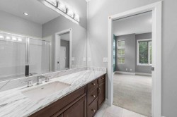 ** Open House, Sun, Nov 30, 1-3pm ** Prime townhome in a choice Bankview location across from a park, tennis courts and community center. Thoughtful architectural design boasts a spacious, 2 bedroom, 2.5 bathroom floor plan complete with gourmet kitchen, dining area, & great room. The main floor accommodates an open concept featuring quarter-sawn mahogany hardwood floor throughout. The central kitchen has a large cabinet style pantry, dark-stained full maple cabinets, and elegant quartz countertops complemented with stainless steel appliances. Each of the two bedrooms on the second floor is equipped with a private ensuite, presenting polished marble countertops, & expansive vanity mirrors. This townhome is nestled in the heart of the city in one of Calgary's oldest communities; a fantastic location that embodies both the charm of an established community and all the conveniences of urban living.