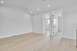 Welcome to this stunning luxurious home featuring a sleek exterior and a contemporary urban design with a 2-BED LEGAL SUITE. With almost 2,300 sq ft of thoughtfully designed living space on the two upper floors, this home offers a spacious floorplan and a large outdoor area rarely found in infill homes. Upon entry, you're greeted by beautiful hardwood floors throughout the main level, leading to a bright and inviting living room with an open-concept layout. The kitchen is a chef's dream, boasting custom cabinetry, quartz countertops. The adjoining family room creates the perfect space for entertaining family and friends. Upstairs, the expansive master retreat features a generous walk-in closet, vaulted ceiling, and a luxurious 5-piece ensuite complete with dual sinks, a freestanding soaker tub, and a glass-enclosed shower. A large bonus room with a wet bar, Two additional bedrooms, a laundry room, and a 4-piece bathroom complete the upper level. The fully finished basement includes a private, legal suite with a separate entrance. It offers a bright living room, a fully equipped kitchen, two bedrooms, an office, a full bathroom, and its own laundry, making it ideal for multi-generational living, hosting guests or additional rental income. This home is filled with high ceilings, abundant natural light, and high-quality finishes throughout. This Killarney duplex offers a perfect blend of luxury and functionality, ready to welcome you home. Call today to book a private viewing before this one is gone!
