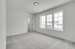 Welcome to the Custom Merritt 2 by Broadview Homes in the desirable community of Hudson Pine Creek — a stunning 2,315 sqft residence walkable to the environmental reserve and designed for modern living. This open-concept layout offers 4 spacious bedrooms, 2.5 baths, a main floor flex room, and a vaulted bonus room perfect for relaxing or entertaining. The chef’s kitchen features stainless steel appliances including a hood fan and built-in microwave, 42” upper cabinets with soffit and crown molding to the ceiling, and sleek granite or quartz countertops. The primary retreat boasts elegant tray ceilings and a luxurious 5-piece ensuite. With 9’ basement ceilings, a sunshine basement, and an oversized double garage, this home blends luxury, comfort, and long-term potential.