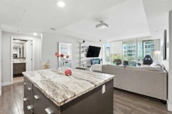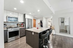 Welcome to your urban sanctuary in the vibrant heart of East Village! This modern 2-bedroom, 2-bathroom suite the Evolution building is a perfect fit for both first-time buyers seeking a dynamic lifestyle and savvy investors eyeing a prime downtown asset.This is a space where style meets function. The bright, open-concept layout is framed by floor-to-ceiling windows that fill the home with natural light. The contemporary kitchen features a gas range, granite countertops, and stainless steel appliances—perfect for a quick meal or a gourmet dinner. Both bathrooms offer the luxury of heated floors, while the primary ensuite boasts dual sinks and a separate tub and shower. Central A/C, in-suite laundry, and secure underground parking and storage add to the low-maintenance appeal.Beyond your door, a world of premium amenities awaits. Residents enjoy a 24/7 concierge, a fitness facility with sauna and steam rooms, a social lounge, and a rooftop patio with BBQs—all designed for a life of convenience and relaxation.With a Walk Score of 94, East Village is your playground. Stroll to the Bow River pathways, the Central Library, Studio Bell, and an array of shops, cafes, and restaurants. The C-Train and Superstore are just a few steps away, making daily errands a breeze.This is more than a condo—it's a smart investment in a thriving, walkable community. Don't miss this opportunity to own a piece of Calgary's most exciting neighbourhood!