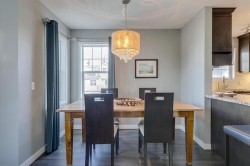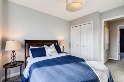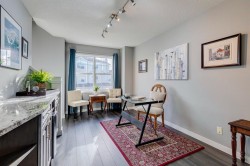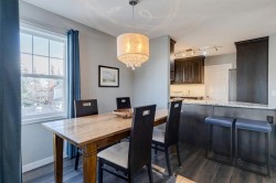 Luxury living in the desirable Quinterra complex on Calgary's posh west side! Enjoy a beautifully designed and landscaped townhome complex with a water feature that greets you as you enter and mature trees throughout. The complex is pet-friendly with plenty of visitor parking and your own attached garage! One of the rare RENOVATED units in this complex, you can enjoy a spectacular kitchen with granite counters, custom cabinetry, stainless steel appliances, under-cabinet lighting and an adjacent laundry/pantry with amazing storage! The dining area is next to the private balcony, perfect for morning coffees and evening BBQs! Enjoy winter nights cozied up in the living room with gas fireplace and views of the trees outside (not a fishbowl of other units like many newer complexes!). Sunny SE-facing den on this level is an amazing home office or could be set up as a lovely music room, yoga space, library, play area, second living room or more. Upstairs, the primary suite is stunning with walk-in closet, additional wall-to-wall wardrobe and luxurious 5-piece ensuite bath with an abundance of storage. Sunny 2nd bedroom is generously sized. Being an end unit gives windows on multiple sides of this home and there is great light throughout! The entry level has a coat closet and direct garage access and the full-length driveway is perfect for a second vehicle. Quick access to all of the shops and restaurants of 85 Street West like Mercato, Blanco Cantina, Una Pizza, brunch spots, sushi, Deville Coffee and much more. Drive downtown in just 15 easy minutes. Drive west to the mountains or enjoy access to nature at nearby Paskapoo Slopes or Edworthy Park. Please note the condo fees INCLUDE HEAT, WATER & SEWER (rare for townhomes) and the heating is in-floor on all levels so it's super cozy and efficient!
