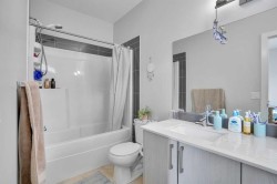 Welcome to this beautiful 1235 Sqft two-story townhome with the finished basement located in most desirable community of Redstone. The main floor welcomes you with a bright and open floor plan featuring a spacious living room, a formal Dinning area, a well-appointed kitchen and 2-piece bath. The gorgeous kitchen has stainless steel appliance, quartz countertops and Center Island. Upstairs, a rare dual Primary Suite layout has its own ensuite bath and large walk-in closets, perfect for families or multi-generational living. Basement is fully finished with 3rd Bedroom has a 4 Pc Ensuite, Recreational Area—great for guests, a home office, or a personal gym. It has a private backyard, dedicated parking stall, durable Hardie board exterior, and professional complex management. New K-4 elementary school is already approved in Redstone. This house is a few minutes drive to shopping plazas, all major highways, Cross iron mills, YYC airport and other amenities. Book Your Showings Today!