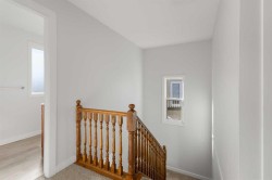 Welcome to this charming 2-storey home in the family-friendly community of Abbeydale, perfectly situated in a quiet cul-de-sac just minutes from Memorial Drive, shopping, schools, and with easy access to Stoney Trail and the airport.This well-maintained home has been recently updated, freshly painted, and is truly move-in ready — just bring your furniture and start making family memories! Major updates include a new roof (2020), triple-pane windows throughout (2018), a hot water tank (2018), and carpet that was replaced in 2018 and freshly shampooed just NOW.The main floor features a bright living and dining room combination and a spacious kitchen with updated cabinetry (after 2016), offering plenty of storage for all your kitchen essentials. From the kitchen, step out onto the expansive deck that overlooks the spacious pie-shaped backyard. A conveniently located updated half bath completes this level.Upstairs, you’ll find a large primary bedroom, two additional bedrooms, and a full bathroom with NEW tiles and a NEW bathtub. The finished basement provides a versatile layout with a spare bedroom and a flex area perfect for a family room, office, or home gym.Set on a pie-shaped lot, the backyard offers plenty of space for outdoor enjoyment and the potential to build a large garage. This lovely home combines comfort, updates, and a great location — a perfect choice for growing families or first-time buyers!