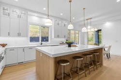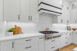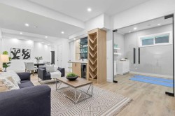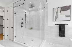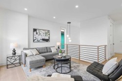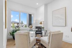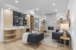 Open house Sat. Nov. 29 (1-4 pm) and Sun. Nov 30 (2-4:30 pm) Luxury residence in prestigious Patterson Heights-The Point- with over 5,000 sqft of living space, where thoughtful design and upscale finishes define every detail. As you enter, you're greeted by a grand entrance, boasting a floor to ceiling custom built closet. To your right is a beautifully appointed mudroom featuring a walk-in closet and impressive floor to ceiling wall unit, with direct access to the oversized double garage that's fully equipped with EV charging outlets, gas rough in for heater, hot and cold water taps. A full bathroom featuring quartz countertops and a floor-to-ceiling glass shower. Soaring 10 ft ceilings and wide vinyl plank flooring flow throughout, creating a seamless, elegant feel. The cozy living room is enhanced by a modern wall unit and ambient LED lighting, while the custom bar area complete with bar fridge, is perfect for entertaining. A private bright gym space with recessed lighting, sleek floating shelving and plenty of room for fitness equipment. The open riser staircase, paired with a PRIVATE ELEVATOR for ultimate convenience, leads to a show-stopping second floor. A light-filled home office overlooks a large window, and a modern half-bath. The stylish dining area is anchored by a built-in LED-lit beautiful wall unit, the glass sliding doors provide access to a balcony, The coffered ceiling family room stuns with an art-block feature wall and gas fireplace. The sliding glass door gives access to a fully finished, landscaped backyard that backs onto serene green space, where wildlife sightings are frequent and peaceful. The kitchen is a true centerpiece with an elegant quartz waterfall island and hidden cabinetry, two-tone modern cabinets, high-end stainless appliances, and a fully equipped spice kitchen for hosting large gatherings. A modern kitchen nook with an exquisite light fixture completes this level. The top floor is an oasis of luxury, starting with a grand primary suite behind French doors. Enjoy a private balcony with views of the green space, a juice bar, in-floor heating in the en-suite, and a spa-style bath featuring a freestanding tub, floor-to-ceiling glass steam shower with rainfall head and granite seating. The second and third bedrooms share a beautiful Jack & Jill bathroom with quartz counters, and a fourth bedroom along with its own full bath and walk-in closet. Don't miss the thoughtfully finished laundry room. The bonus room is a standout, with downtown views, and another wall unit. This level boasts 9 ft ceilings, continuing the home’s spacious and airy feel. ADDITIONAL UPGRADES: Basement rough in under slab heating, 75 gallon hot water tank, 2 high-efficiency furnaces, 2 central A/C units, extensive built-ins. The exterior is fully landscaped, composite rear deck with a gas line.This is a true masterpiece offering luxury, comfort, and functionality across all three levels complete with elevator access. A rare offering in an exceptional location.