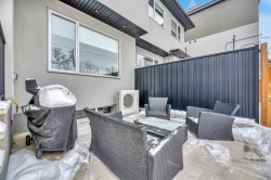This exceptional inner-city infill stands apart for its quality, craftsmanship, and thoughtful design. Located in the sought-after community of Renfrew, this stunning two-storey home offers unbeatable access to schools, recreation facilities, scenic pathways, public transit, and is just minutes from downtown, WALKABLE even! Every detail has been carefully curated, from the designer lighting and custom tile work to a tailored built in with mirror, a timeless neutral palette, and a main floor office. Oversized windows and 9’ ceilings on all three levels flood the home with natural light, enhancing the open, modern layout that balances style with everyday functionality.The chef-inspired kitchen is a true showpiece, featuring a premium Jenn-Air stainless steel appliance package, custom cabinetry, built-in wine cooler, and an impressive 13-foot quartz island with seating for four—perfect for entertaining. The space flows seamlessly into the dining area and inviting living room, anchored by a striking tiled gas fireplace for chilly winter nights. Central air also included for the future warm days of Calgary! Upstairs, the primary retreat is nothing short of spectacular, showcasing a spa-like ensuite designed for relaxation with a soaker tub, dual sinks and walk in shower, a walk-in closet, and Two additional great sized bedrooms, a spacious 4 pc bathroom, and convenient upper-level laundry complete this level.The fully developed basement offers an ideal home theatre space with a refreshment station—perfect for movie nights or entertaining guests. Outside, enjoy a low-maintenance, landscaped and fenced backyard with a private ground-level patio, green space, and a double detached garage already wired for EV charger. Quick possession is available if you want to spend the holidays here! A refined inner-city lifestyle awaits in this meticulously crafted Renfrew home.