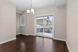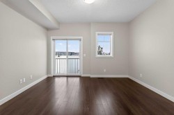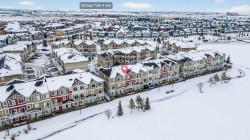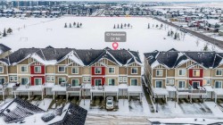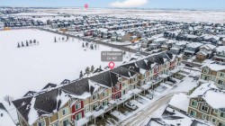 BACKING ONTO A HUGE GREEN SPACE! Location, Location, Location! Welcome home to this bright and spacious open-concept townhouse condo in Kintalla of Redstone, featuring a main floor with laminate flooring, a generous living room, and a beautifully appointed kitchen with ceiling-height cabinets, ample counter space, and a centre island with a breakfast bar, along with a large dining area that opens to the balcony and a convenient 2-piece bath. The upper level offers two primary bedrooms, each with its own ensuite, plus the convenience of upper-level laundry. Ideally situated close to a shopping plaza, parks, playgrounds, a future school site, a bus stop, quick Stoney Trail access, and only a few minutes from the Calgary International Airport. An excellent opportunity for first-time home buyers and investors—book your showing soon, as this one won’t last long!