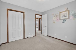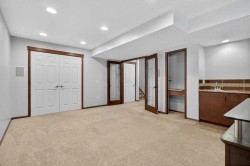 This wonderful 2 Storey home in the heart of McKenzie Towne's Elgin Village offers over 2,000 sq ft of developed space, blending charm, comfort, and practicality. Inside, the main floor features a flexible office/bedroom and a convenient 2-piece bathroom. The thoughtful kitchen layout, with a central island and stainless-steel appliances, transitions into the open-concept dining and living room. The upper level includes three bedrooms, including a primary suite complete with a 4-piece ensuite and a walk-in closet. Relax in the fully developed basement, featuring a generous rec/theatre room, a wet bar, wired architectural surround-sound speakers, a bedroom, and a 3-piece bathroom. The home boasts amenities such as a dedicated laundry room, central air conditioning, a continuous hot water system, and a Kinetico water softener. Enjoy the outdoor space with low-maintenance turf grass, a composite rear deck, and a relaxing hot tub. The oversized Triple Gpgarage is 30' x 26' heated and insulated garage features a 9 ft ceiling with additional storage loft, ideal for hobbyists or extra storage needs. The location is perfect for families and professionals, with McKenzie Highlands School nearby, beautiful bike paths and parks, access to McKenzie Towne Centre, and South Health Campus.