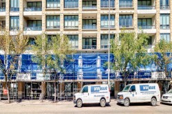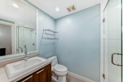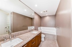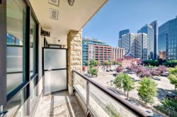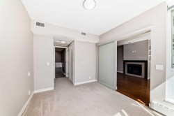 Modern One bedroom with Den/2bath condo unit on the "Flats Tower" of The Prestigious Waterfront Condo, Calgary's upscale Downtown neighborhood. Open concept floor plan, 9' ceilings, floor to ceiling windows. Kitchen is fully equipped with high-end stainless steel appliances. Quartz central island & countertop. Full heights cabinetry. In-suite laundry & air conditioned. Unit includes an assigned parking stall & a storage locker. Enjoy living in a resort style building with superior amenities : concierge service, fitness facilities, hot tub, sauna, movie theatre, social lounge, outdoor garden patio, visitor parking & car wash. Move in & enjoy the lifestyle of a waterfront community along the Bow River & Princess Island Park. Walking distance to Downtown, Chinatown, East Village & Eau Claire Market, shops & restaurants. Bike or walk along the water path. Perfect for first time buyers or as an investment property.