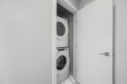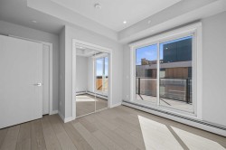 Experience modern urban living in the heart of West District at Mondrian. This well-designed 2-bedroom, 1-bathroom residence offers a smart use of space, combining functionality with contemporary style—perfect for those who value convenience and a vibrant community setting.The open-concept layout connects the kitchen, dining, and living areas, creating an efficient and welcoming space. The kitchen is outfitted with premium finishes and high-end appliances, including an integrated refrigerator, gas range, and built-in microwave—bringing both elegance and ease to everyday living.While compact, both bedrooms provide flexible options for a guest room, home office, or personal retreat. The centrally located 4-piece bathroom is easily accessible from all areas of the home.Additional highlights include in-suite laundry, air conditioning, and stylish window coverings. Step out onto your private balcony—ideal for a quiet morning coffee or an evening wind-down.Residents of Mondrian enjoy exclusive access to a rooftop terrace with breathtaking views, modern seating areas, and an ideal setting for entertaining or relaxing.Located steps from boutique shops, gourmet dining, parks, and essential amenities, this home delivers everyday convenience in one of Calgary’s most sought-after neighbourhoods. Titled underground parking ensures your vehicle remains secure and protected year-round.This is your opportunity to own a sleek, low-maintenance home in West District—discover the lifestyle that Mondrian offers today.