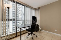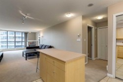 Welcome to the Axxis building located in the heart of West Downtown. This unit features an open floorplan with carpet and tile flooring throughout. A large kitchen with plenty of upper and lower cabinetry and an island. Dining area and living room with a cozy corner fireplace. Large bedroom, a den that could be used as an office space and full 4pc bathroom. Assigned secured underground parking, storage locker and insuite laundry. Concrete building providing a quiet living and slight views of the Bow RIver. Amenities include a fitness centre and a party/recreation room. Just steps away from LRT Station, restaurants, shopping, pathways and the Bow River. Don't miss out on this opportunity. Make your private showing today.