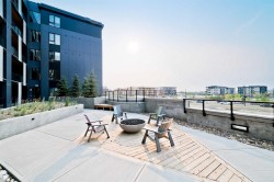Experience modern urban living in this beautifully designed 2-bedroom condo in the highly sought-after University District. This bright top floor home immediately welcomes you with an abundance of natural light and elevated modern finishes. The thoughtfully designed layout features stainless steel appliances, quartz countertops, floor-to-ceiling cabinetry, dropdown ceilings, and LED under-cabinet lighting for a sleek, polished look. Luxury vinyl plank flooring flows throughout, enhancing the contemporary feel. Enjoy morning coffee or evening barbecues on your private patio, and stay comfortable year-round with in-suite air conditioning. Residents enjoy exceptional building amenities including a 700 sq. ft. lounge with a full kitchen off the main lobby, a car wash bay in the parkade, secure bike storage, and a beautifully appointed 4,200 sq. ft. rooftop patio on the second floor—complete with bench seating, planters, and a cozy gas fireplace. Positioned in one of Calgary’s most connected and convenient areas, the building sits just steps from Save-On-Foods, popular cafés, fitness studios, and a host of new amenities. The University of Calgary, Market Mall, and Alberta Children’s Hospital are all just minutes away, making this an unbeatable location for everyday living.